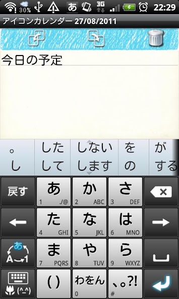 Toque na tela na data selecionada e um teclado será exibido. Você pode salvar o texto